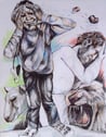 Technik: Zeichnung mit Künstlerfarben und Graphit, auf Aquarellkarton