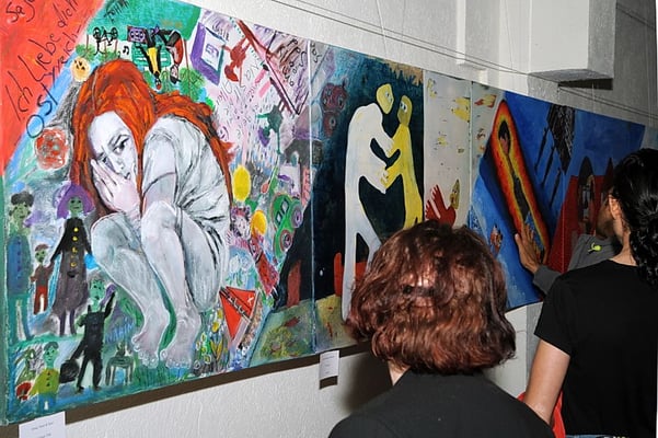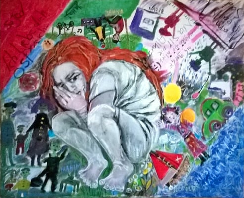 Diese drei Bilder malten fünf meiner Schüler-Männer (Refugees) gemeinsam mit mir. Sie sind für ein internationales Kunstprojekt von Desmond Doyle bestimmt: "see the big picture" zum Thema IMMIGRATION. Unser Titel: Europa macht Platz" . In meinen Schüler-Männer-Bildern wurden, freiwillig natürlich, die Fluchtgeschichten thematisiert.